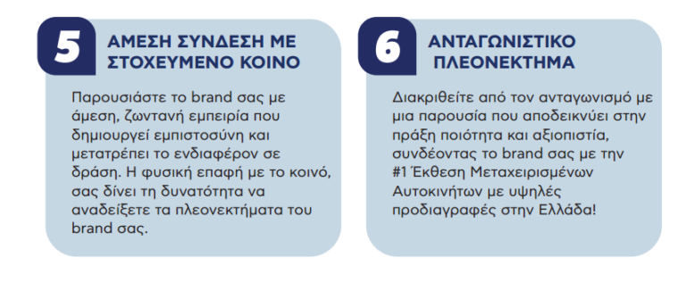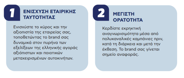 Η USED CAR EXPO  προσφέρει μια μοναδική ευκαιρία για κάθε επιχείρηση να ενισχύσει την παρουσία της στον κλάδο, να προβάλλει τα προϊόντα της, να έρθει σε επαφή με νέους πελάτες και συνεργάτες, και να αναδείξει τις καινοτομίες της.